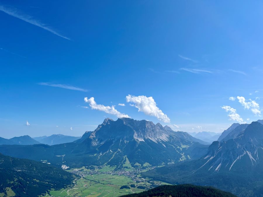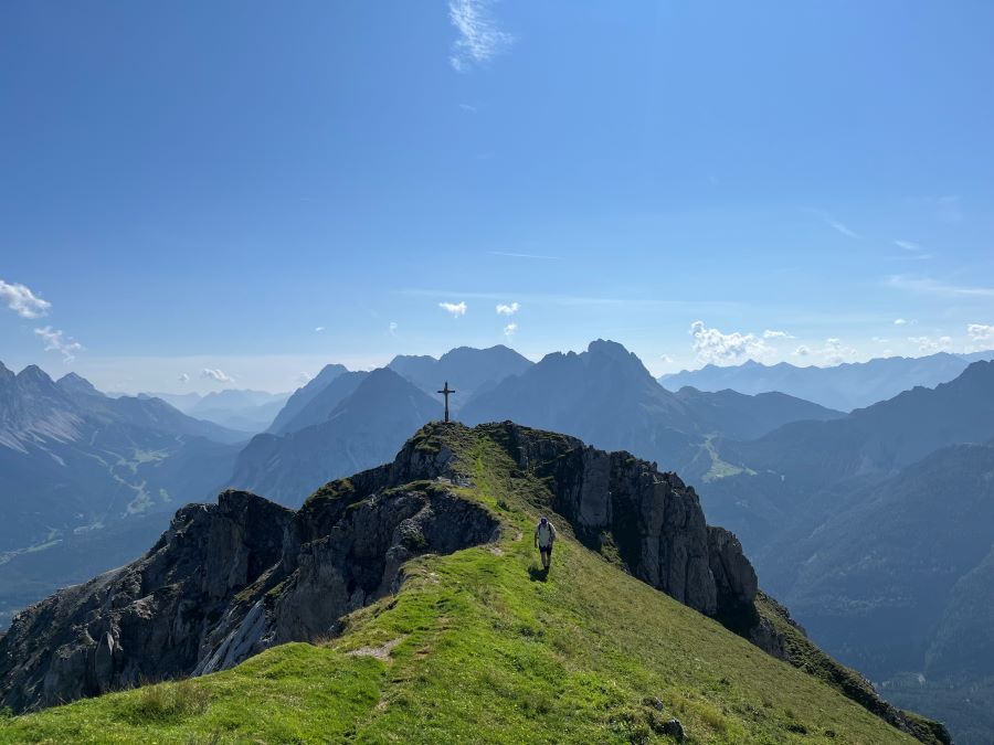 On the day we climbed the mountain, deep in the summer holidays, we met about six people all day. The route uploaded onto AllTrails is exactly the way we did it (although first we had to cross the moss from Ehrwald – a flat stroll in the morning light and then later in the evening that nevertheless added a good five kilometres to the total for the day). It is not an easy walk. With nearly 1,400m of elevation gain, some scree slopes to cross and few points on the ridge that feel quite exposed, we were extremely happy to do it in warm, calm and clear weather.