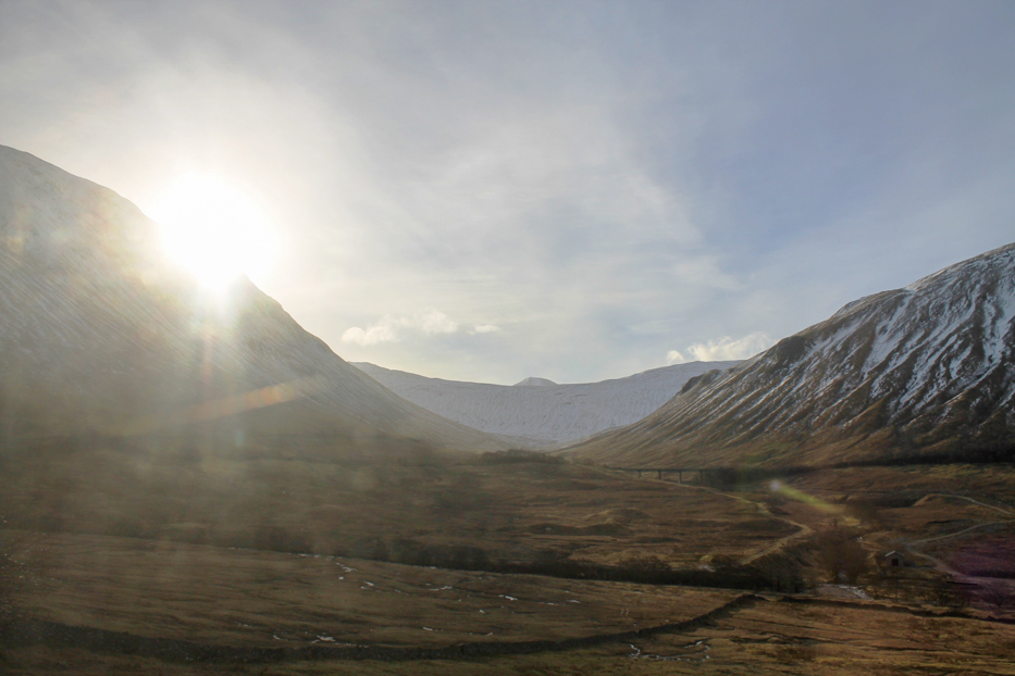 We took our position at the window, sipping on tea and coffee while spooning our porridge that had been delivered to our compartment, as the train moved north of Glasgow along the water. Hills and towns, ships on the Clyde and, slowly but surely, the gentle rise of the land as we moved ever closer to Rannoch Moor.