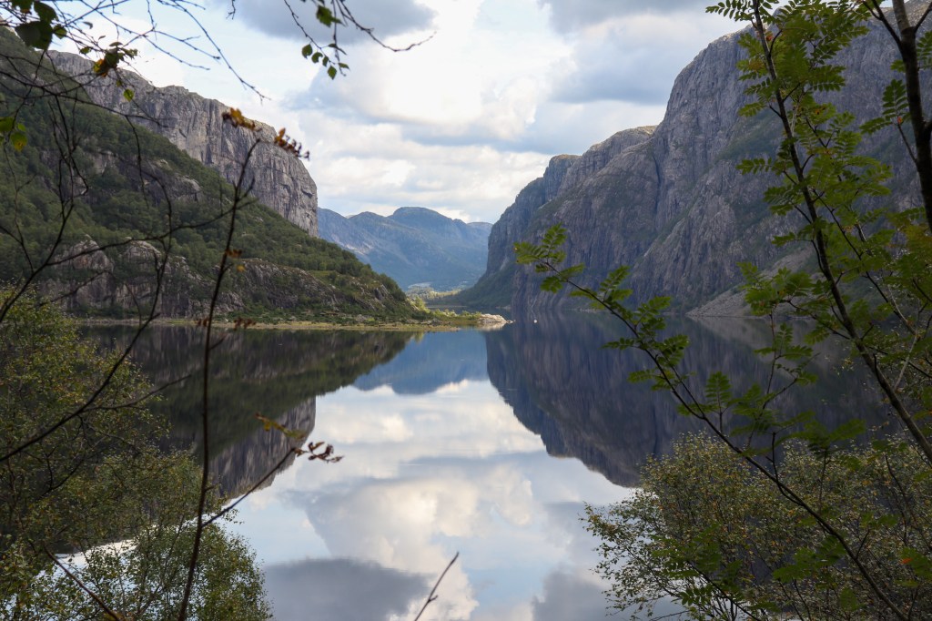 On the last morning we sat by the lake as thin clouds hung low above the water, cutting the hills beyond the opposite shore in two. We had spent almost a week in these valleys and never made it the Pulpit Rock. Would our trip have been better if we’d seen it? We’ll never know the answer to that question. But what we were sure of, was that our time spent and our experience was richer because we had got to know this place in some small way. We had spent unrushed time in the landscape. We had met people who told us about their relationship to it. How they loved it, but also their fears for the future and the impact of the worsening climate crisis.