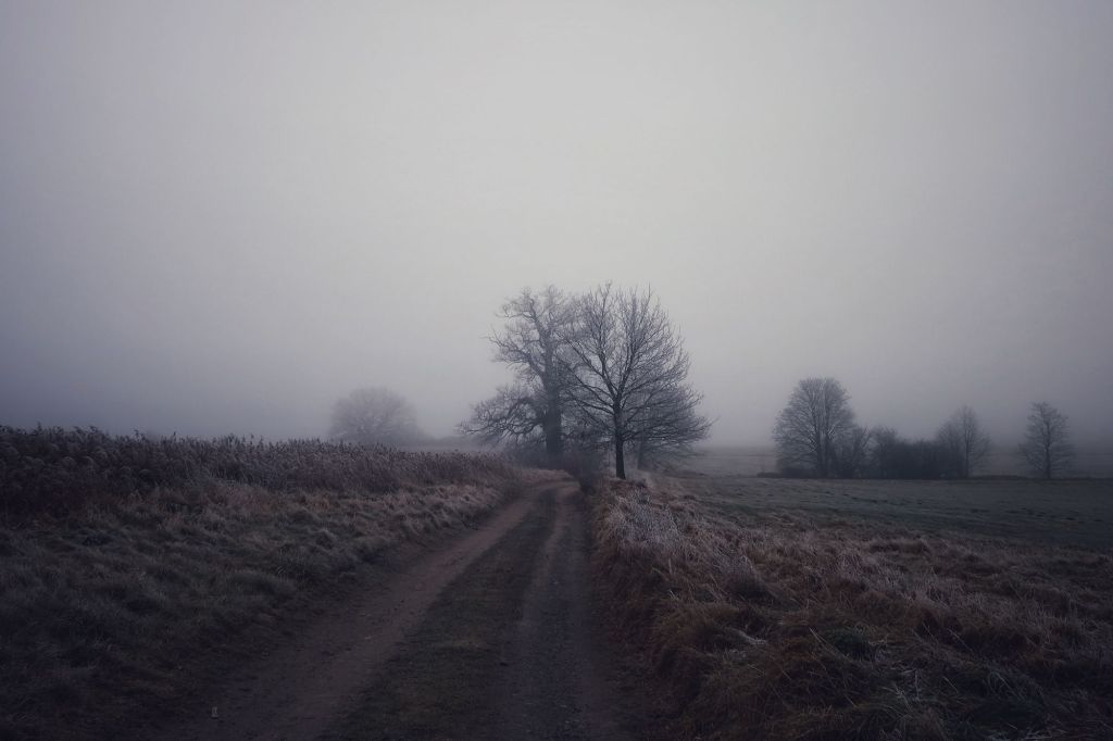 It is one of those days. The grass, the limbs of trees and the roof tiles of the village houses are dusted in the white. Spruce trees stand tall against a grey sky. The mist settles in around late morning, and with not a breath of wind to shift it you know that this is where we are. This is the weather for today and nothing will change before darkness falls in mid-afternoon, as if we’ve collectively taken a decision to hunker down and wait to see how things might go tomorrow.