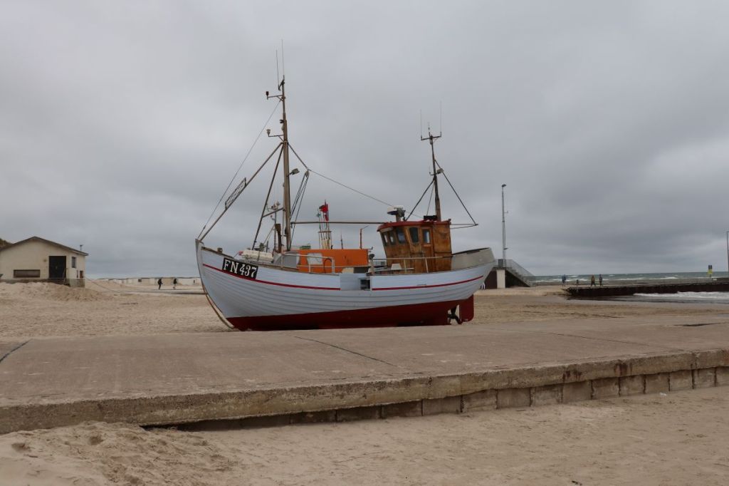 Compared to the composure of the Kattegat that we left behind a few hours before, the North Sea is vast, restless and unruly. Fishing boats have been pulled up high onto the sand, and the white summer houses are beginning to be closed up for the autumn, the sand drifting around them. Kite surfers have braved the waves, riding the white horses beyond their final breaking point. The wind whips, a stinging crack to the cheek. We escape back beyond the dunes to the white houses of the town, huddled in their shadow, in search of warming tea, coffee and hot chocolate.